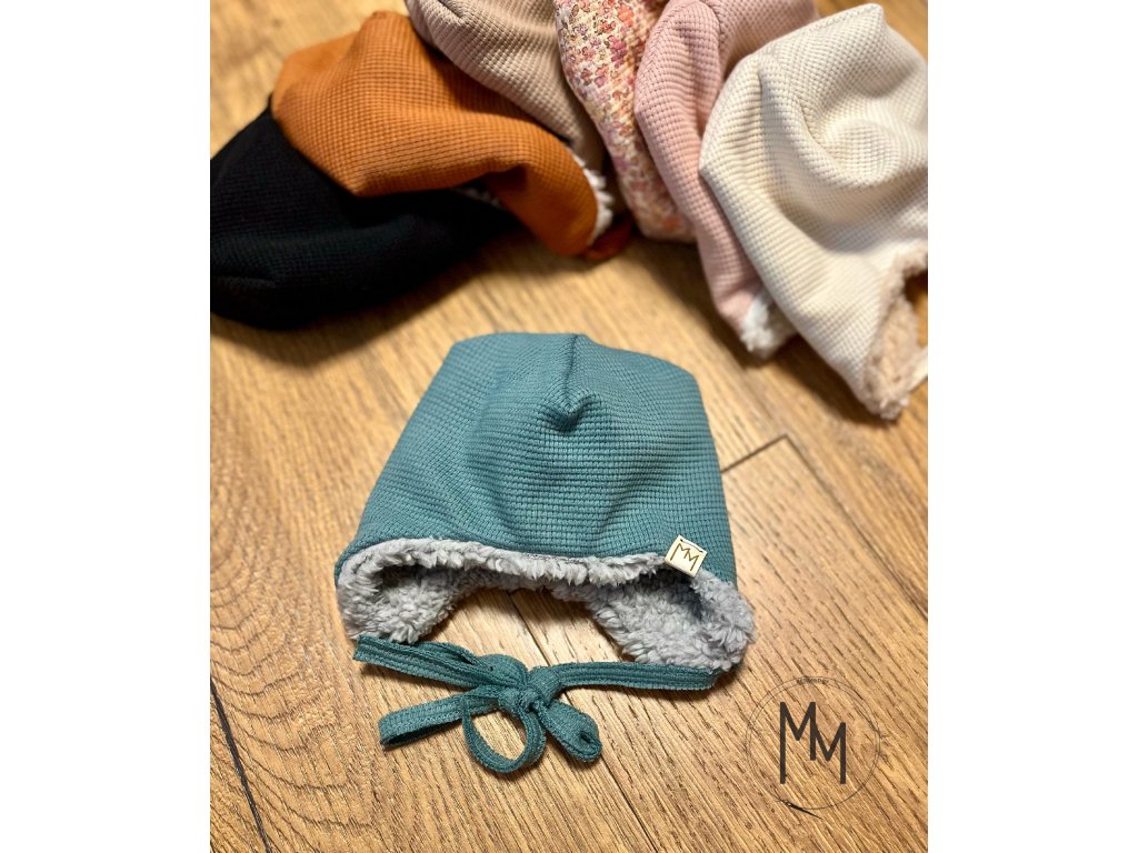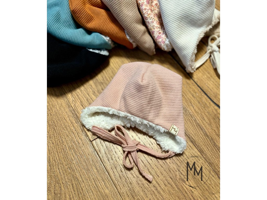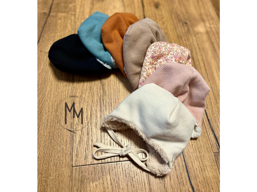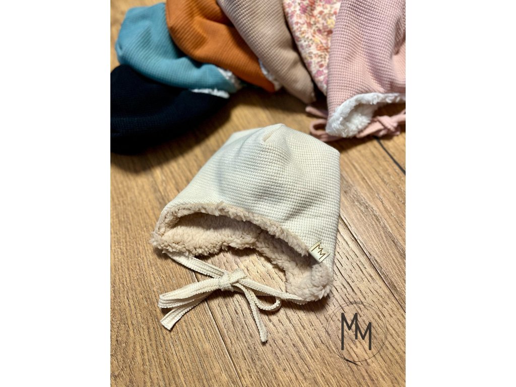 Zimní mimi vaflovačky ušanky s beránkem vás okouzlí na pohled i na dotek. Ušanky jsou doplněny vázáním, aby vašemu miminku správně drželi na hlavičce. Vrchní vrstva je z bavlněného valového úpletu a vnitřní vrstva z beránka, takže i přes svoji dvojitou vrstvu jsou prodyšné, hřejivé i šetrné k jemné a citlivé pokožce miminka. Sestavte si čepici podle svého, vyberte vrchní barvu vafle a beránka.