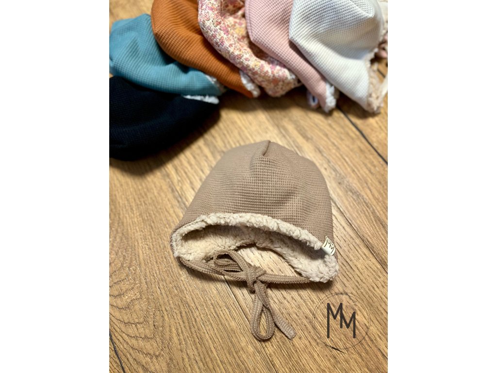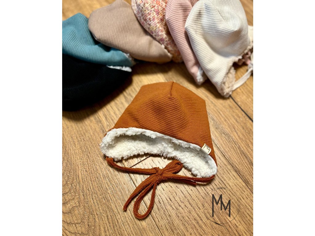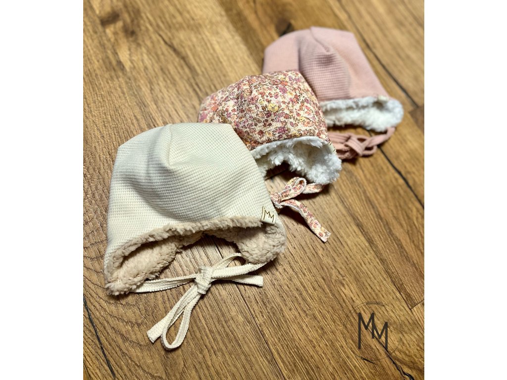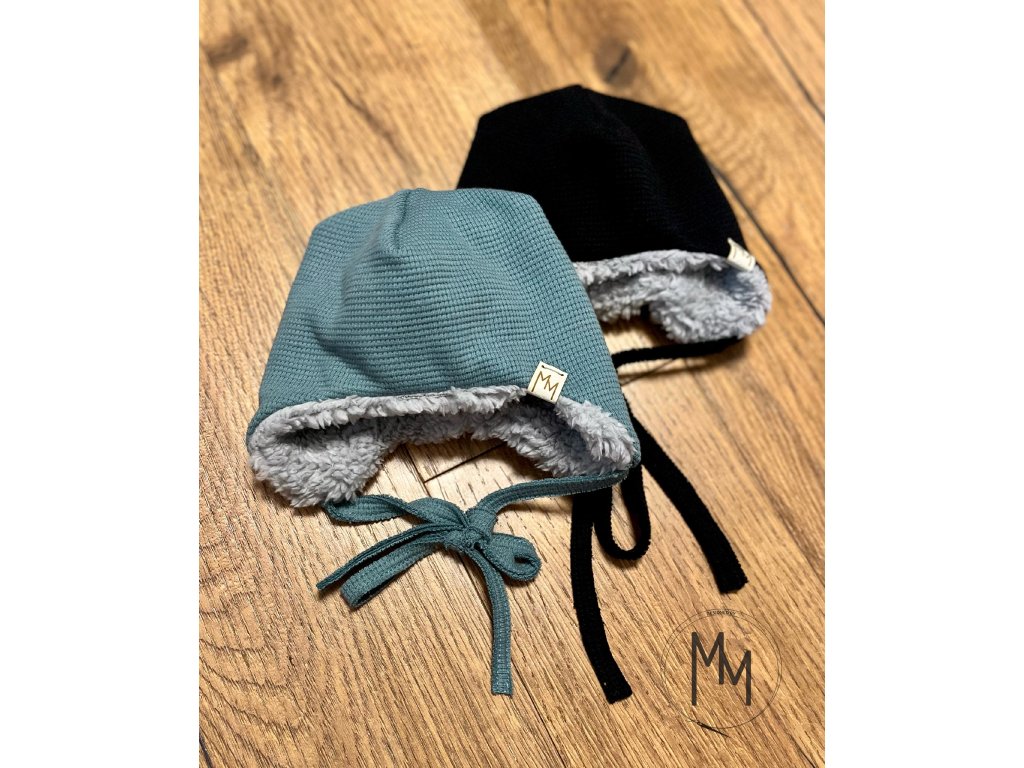 Zimní mimi vaflovačky ušanky s beránkem vás okouzlí na pohled i na dotek. Ušanky jsou doplněny vázáním, aby vašemu miminku správně drželi na hlavičce. Vrchní vrstva je z bavlněného valového úpletu a vnitřní vrstva z beránka, takže i přes svoji dvojitou vrstvu jsou prodyšné, hřejivé i šetrné k jemné a citlivé pokožce miminka. Sestavte si čepici podle svého, vyberte vrchní barvu vafle a beránka.